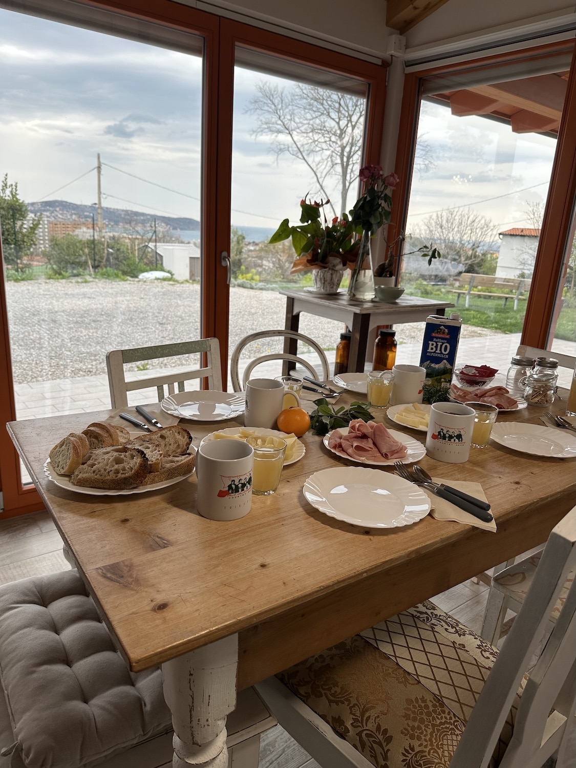Cinque camere confortevoli, un grande giardino con alberi da frutto e una vista mozzafiato sul Golfo di Trieste.